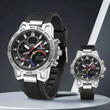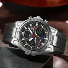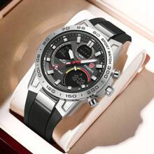Shein - Top Luxury Original Fashion Watch Men's Quartz Steel Luminous Waterproof Dual Display
