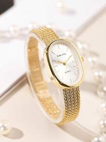 Shein - Vintage Oval-Shaped Watch With Exquisite Small Dial And Wheat Strap