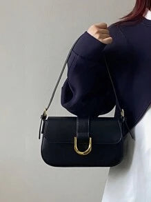 Shein - Vintage Style Red Patent Leather Square Crossbody Bag With Horsebit Buckle, Suitable For Girls