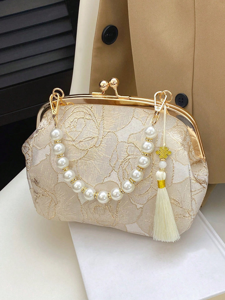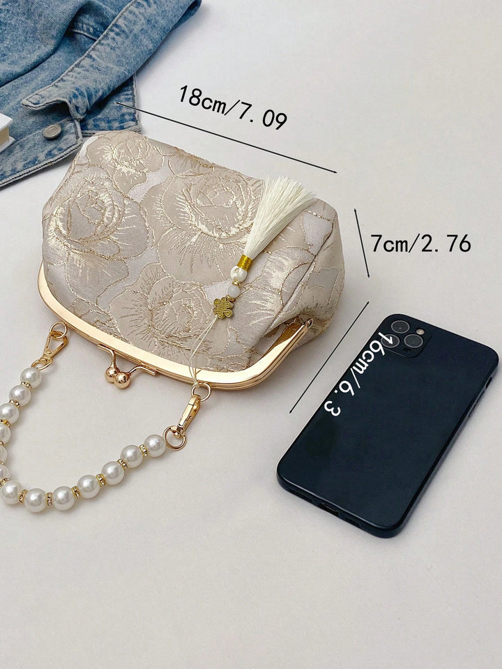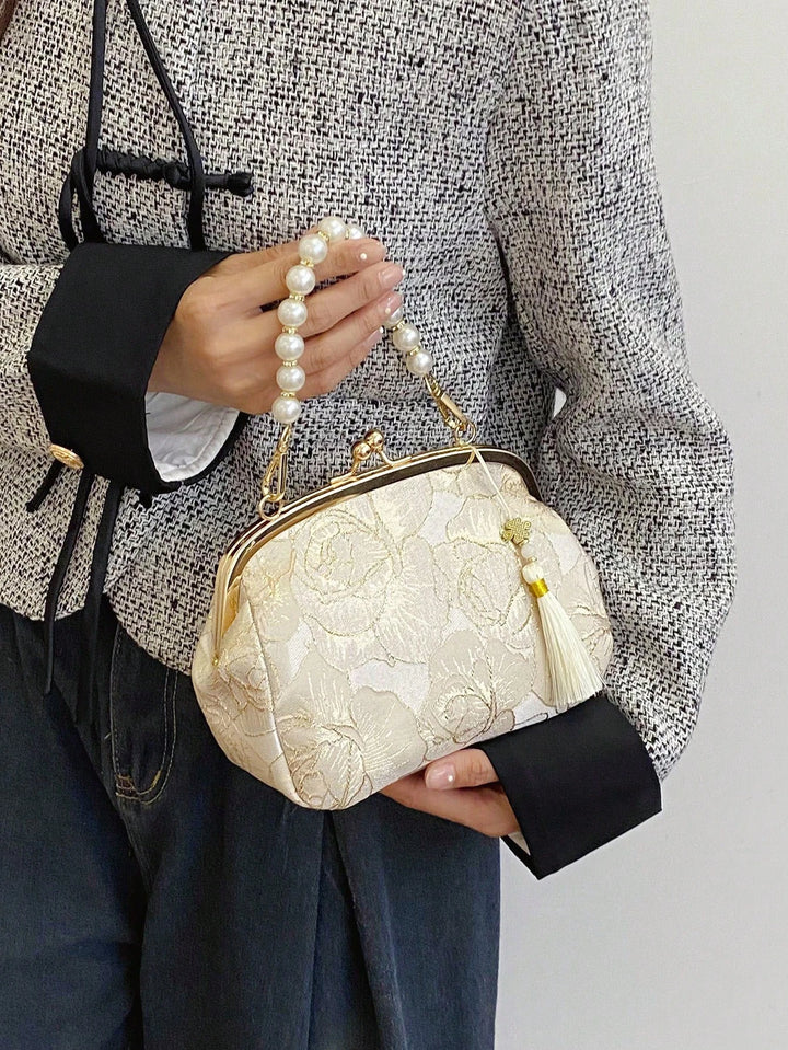 Shein - Women Summer Fashion Handbag, Beaded Embroidery Tassel Flower Print Clutch Purse