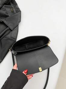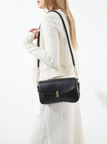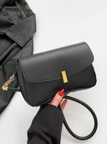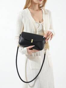 Shein - Women's Fashionable Casual Solid Color Convertible Shoulder Bag Black