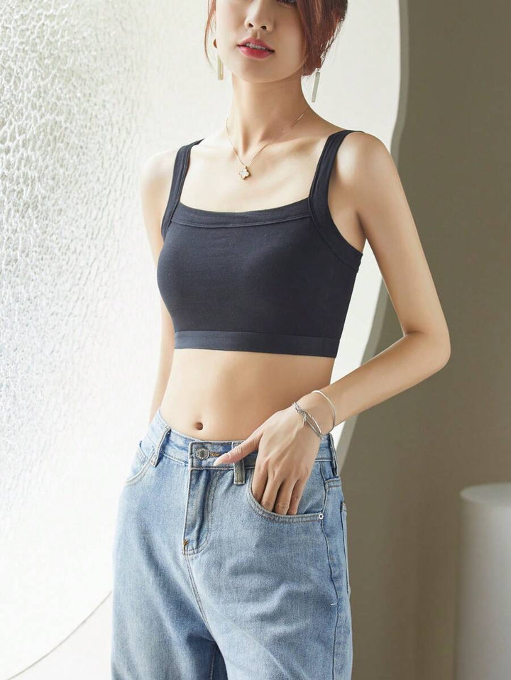 Shein - Women's Fixed Padded Sports Vest Without Steel Ring and Built-in Bra in Black