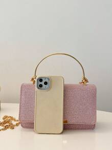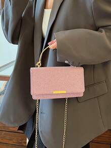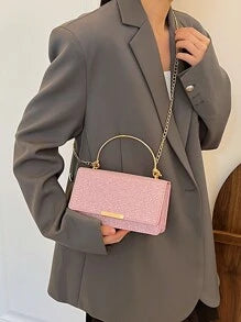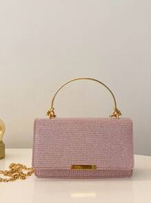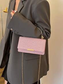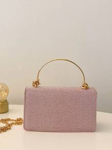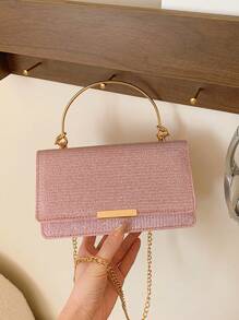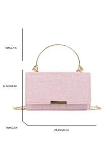 Shein - Women's Metallic Clutch Bag, Chain Crossbody Small Square Bag