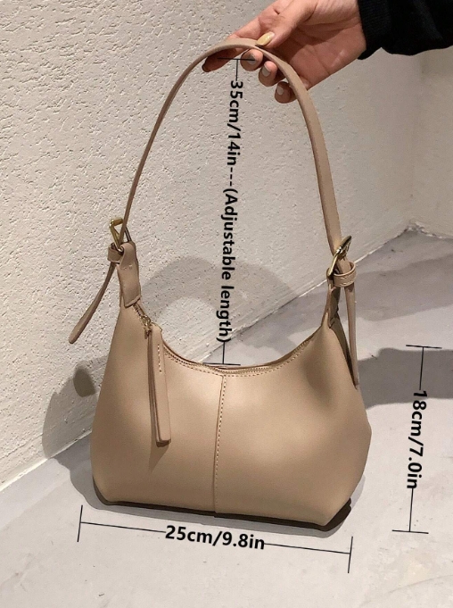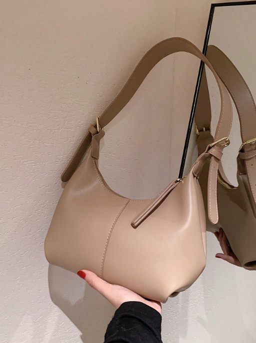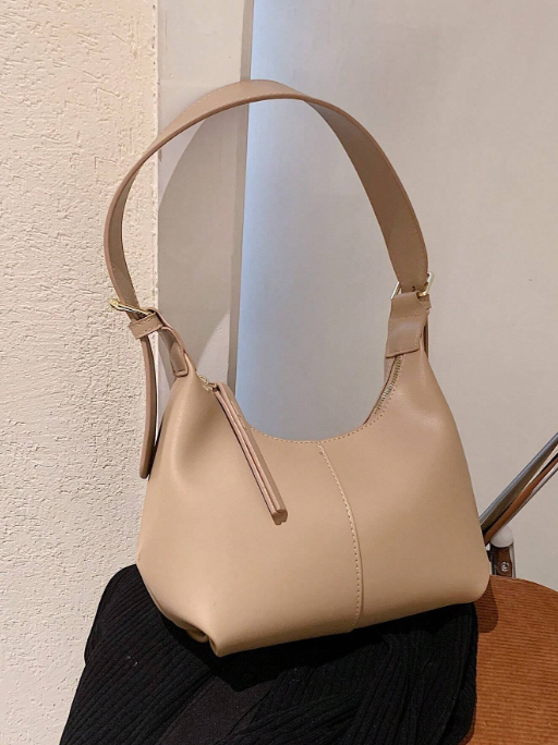 Shein - Women's Solid Color Zipper Design Underarm Crossbody Bag