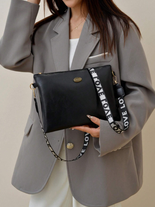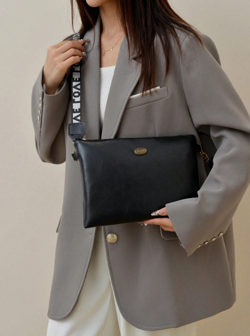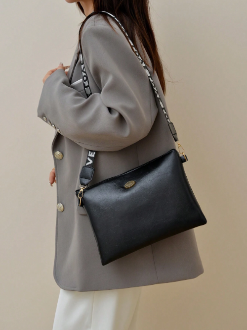 Shein - Women's Vintage Oil Leather Crossbody Shoulder Bag