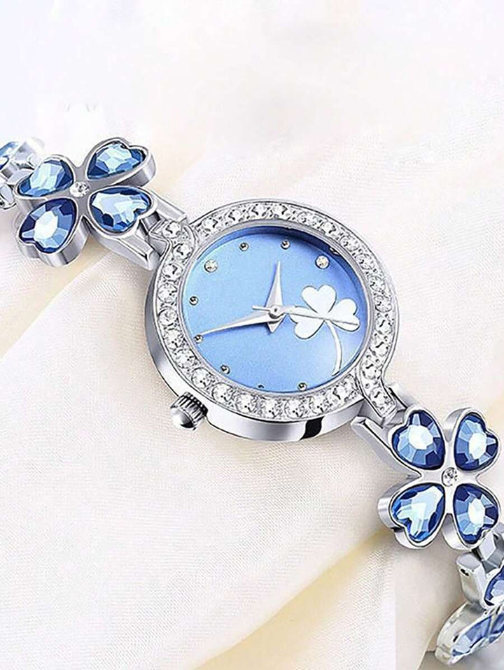Shein - Women's Watch Clover Charm Quartz Bracelet Watch