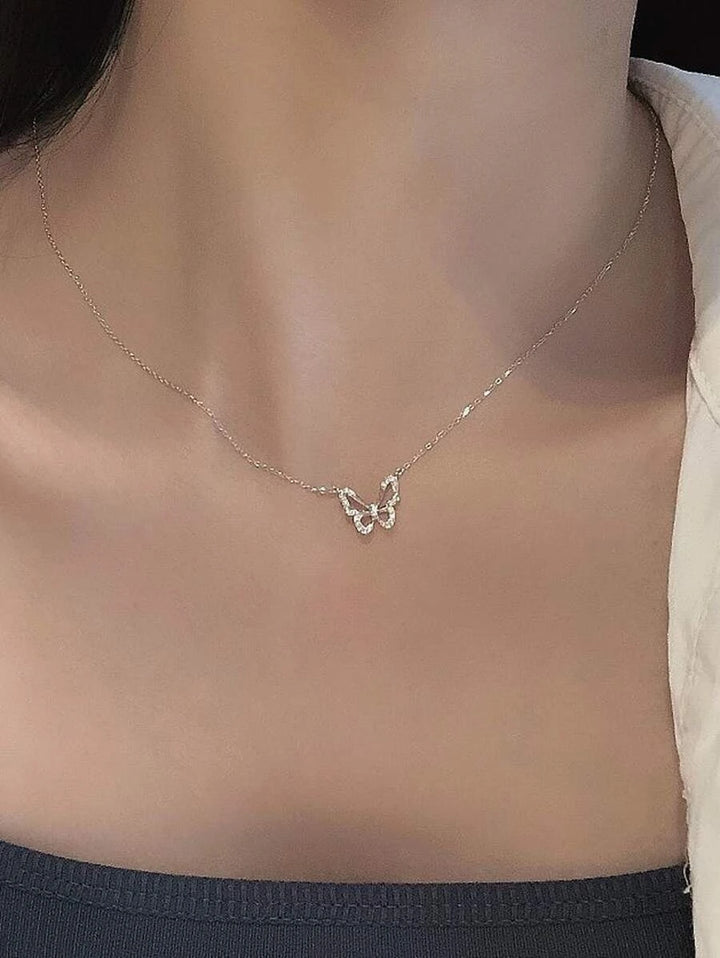 Shein - Fashion zinc alloy necklace with rhinestone decor and butterfly pendant for daily decoration one piece for women