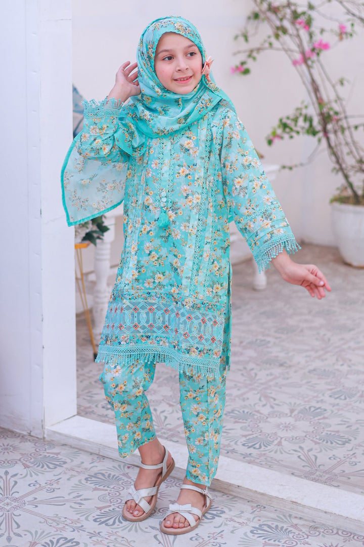 Shifa Girls By Suntex Stitched 3 Piece Emb Lacekaari Cutwork Collection'2025-SH-2511-Sky Blue