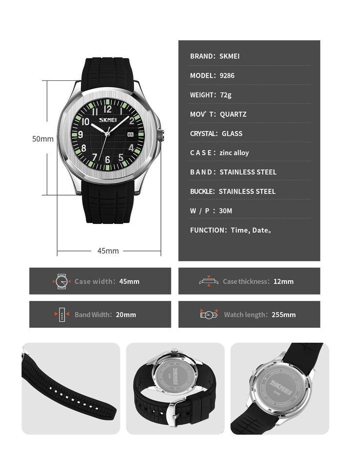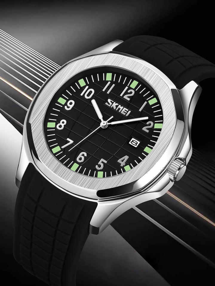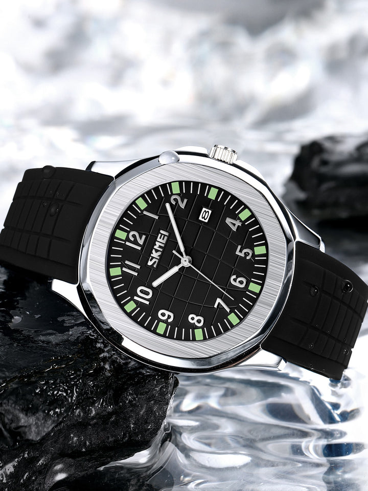 Shein - Men's Luxury Silicone Watch, Stainless Steel Back, Water Resistant Quartz Watch