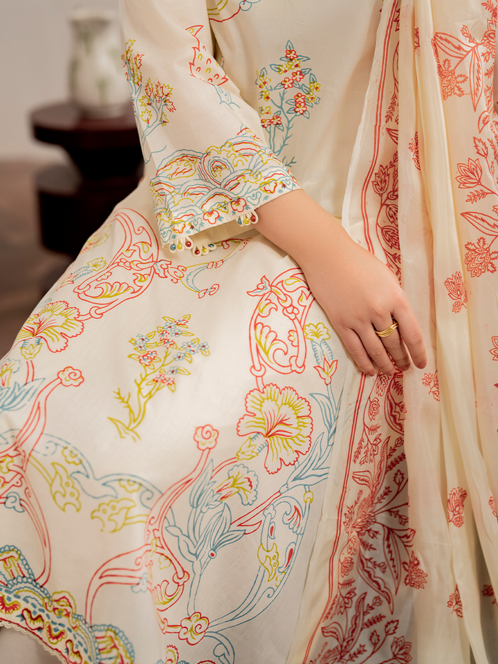 -Dupatta Fabric: Screen Printed Silk