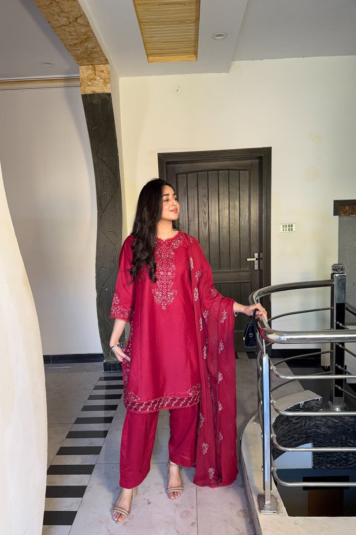 Spring Edit'25 By Mannat Clothing Stitched Collection-Carmine