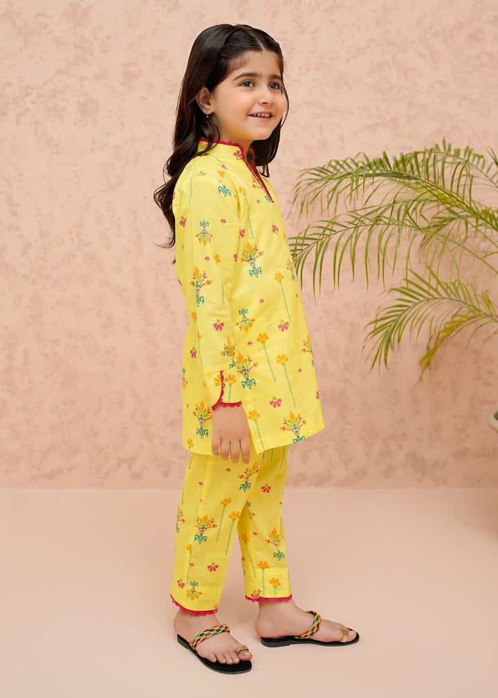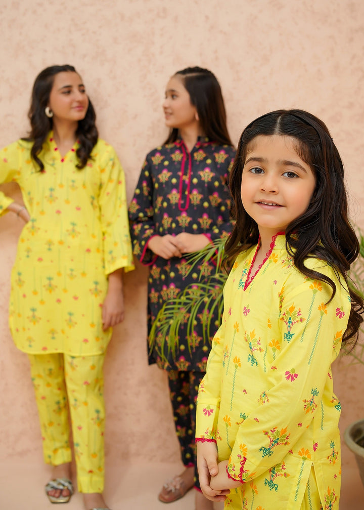 This charming Mango Mist lawn 2-piece dress set is perfect for little girls aged 1 to 7 years. Crafted from soft, breathable lawn fabric, it ensures comfort throughout the day, making it ideal for casual wear. The bright yellow color adds a cheerful touch, brightening up any occasion. Designed with both style and ease in mind, this outfit allows your child to move freely while looking adorable. A delightful choice for everyday wear that combines practicality with a gentle, sunny charm.