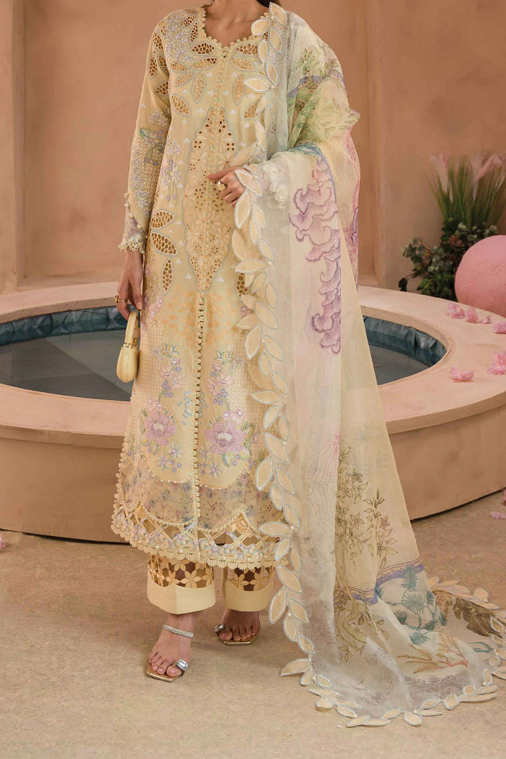 The Painted Garden By Afrozeh Unstitched 3 Piece Emb Lawn Collection'2024-AEF-08-Sweet Saffron