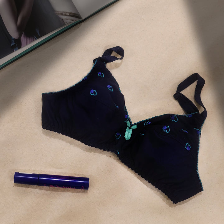 Bebelle - TLP-Hearts, Cotton embroidered Unpadded Bra - NAVY BLUE