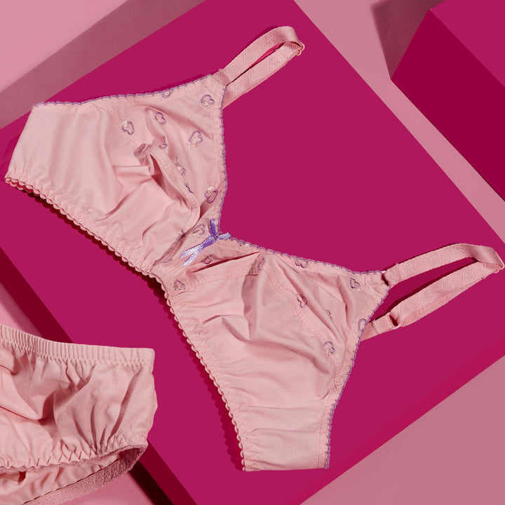 Bebelle - TLP-Hearts, Cotton embroidered Unpadded Bra - ORCHID PINK