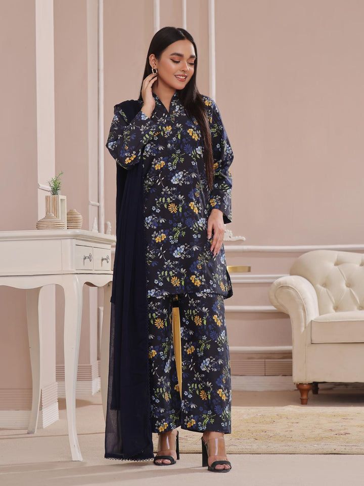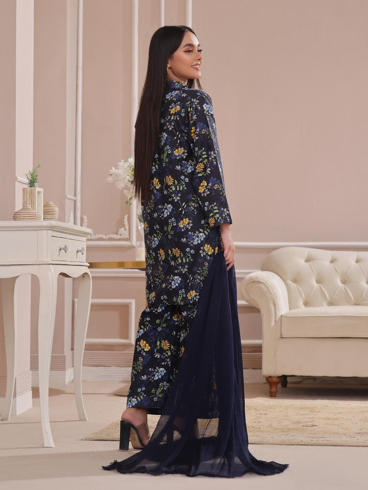 A very beautiful |khaddar| printed shirt trouser with matching dyed crinkle chiffon dupatta with four sided GPO lace (Dupatta Length : 2.75 mtr)