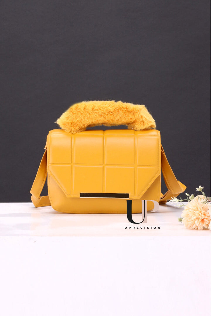 This playful crossbody bag features a soft and luxurious faux fur handle. The bag converts easily to a shoulder bag with an adjustable strap, providing versatility and comfort.
