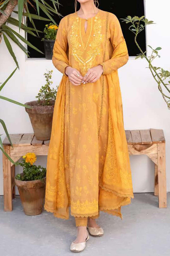 Uraan by Cross Stitch Unstitched 3 Piece Premium Lawn Collection'2023-24-Mustard Oriane