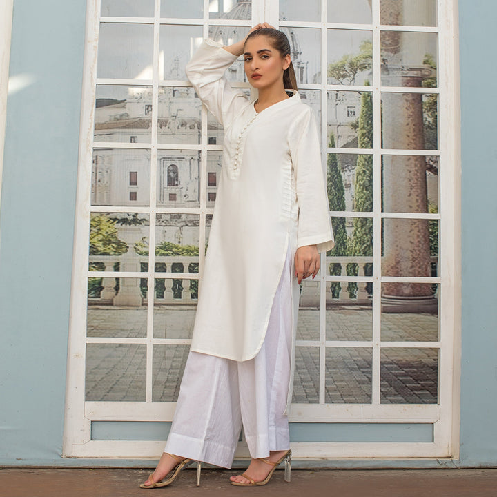 Get ready to fall in love with our Forever Love pleated long Dress from back ! Made from 100% Cool Cotton . Insertion of 28 Pleats at side view and Buttons at Placket with loops add extra ordinary value to your wardrobe