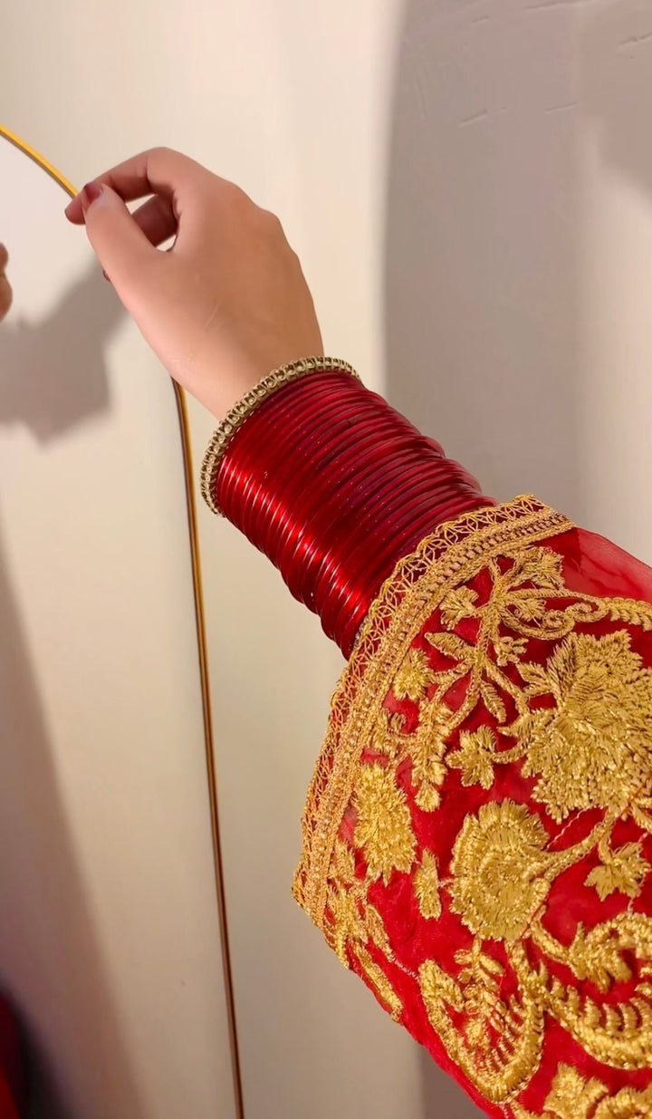 Hot Red Exclusive Laurex Embroidered with Sequence on Daman Bulky Hanging Tussle for formal attire