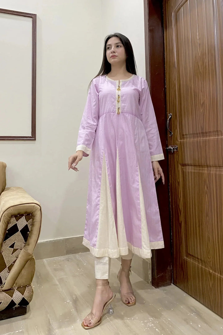 Urban Cut Cotton Purple Printed Patch Work Comfortable Frock 1 Piece