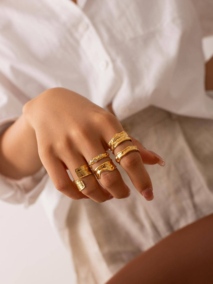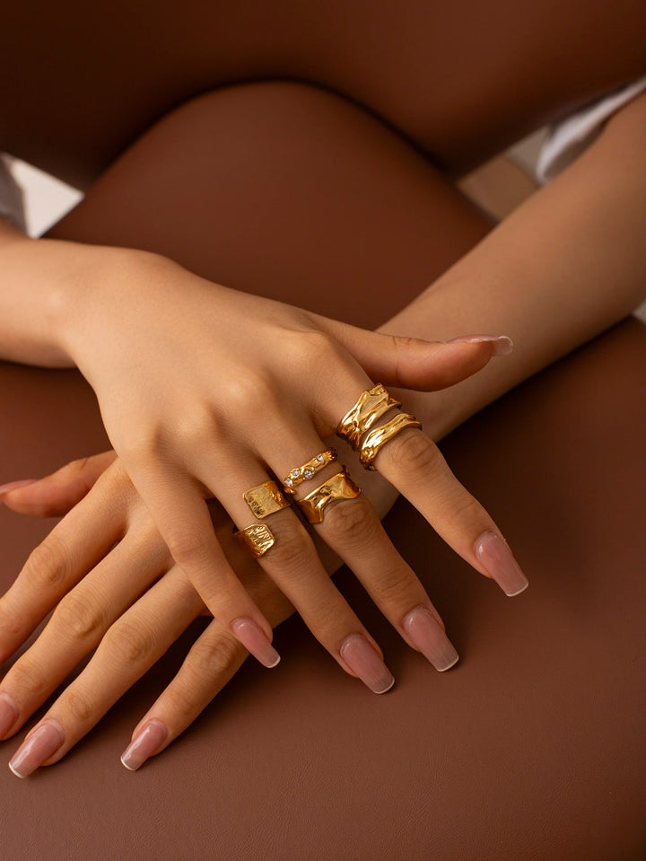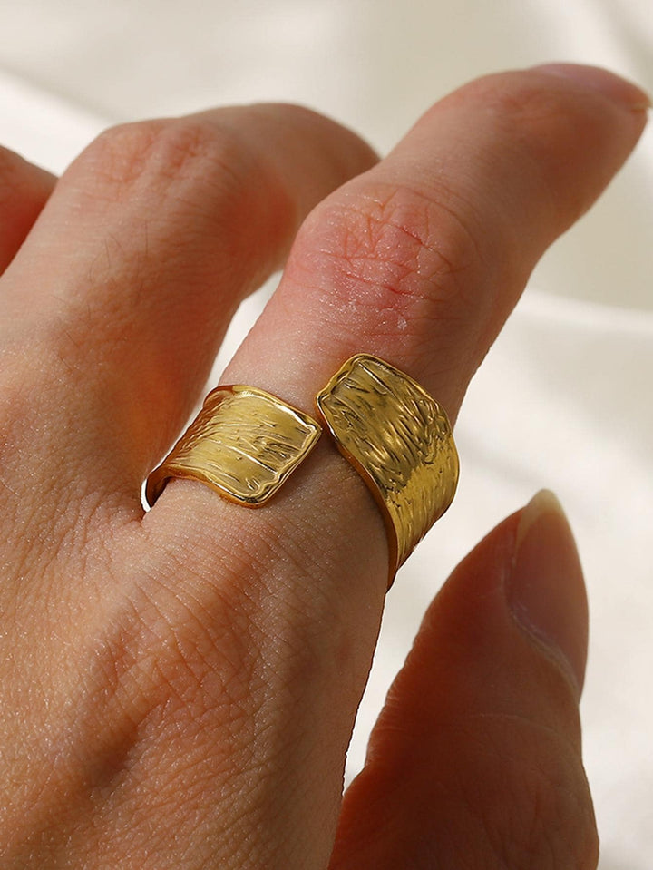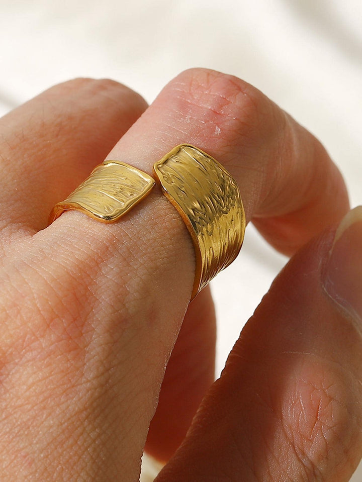Shein - Uworld 1 pair of 18K gold stainless steel textured French retro diamond pleated open rings for daily wear
