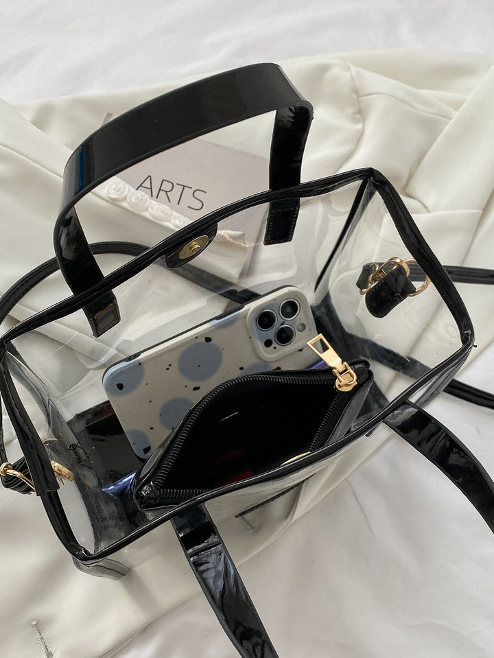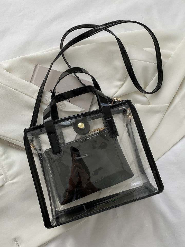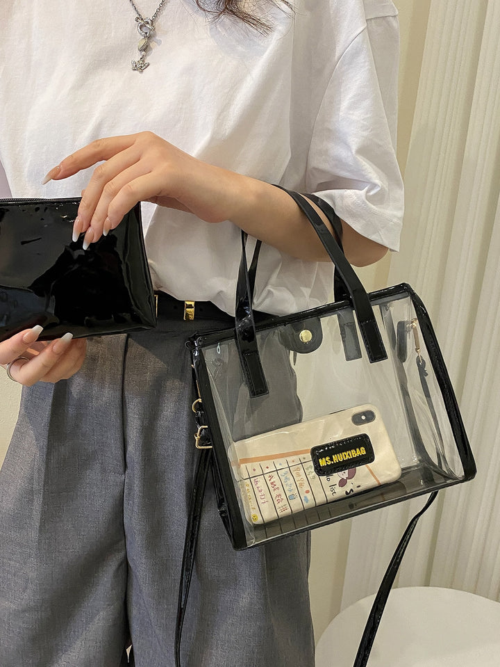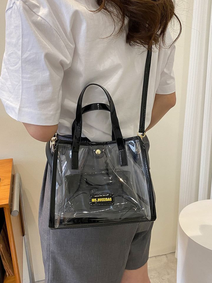 Shein - Waterproof The New Transparent Beach Bag Is Versatile And The Mother's Foreign Tote Bag Is Fashionable And Trendy, One-Shoulder Cross-Body Bag, Women's Bag ,Trendy Transparent, Clear Waterproof Bag For Women, Perfect For Summer, Vacation & Beach