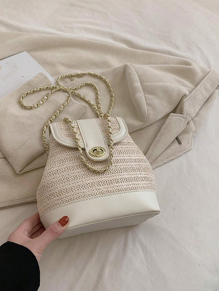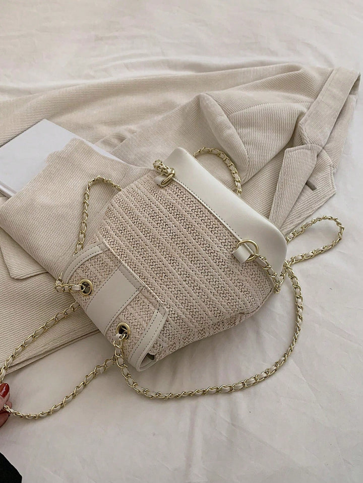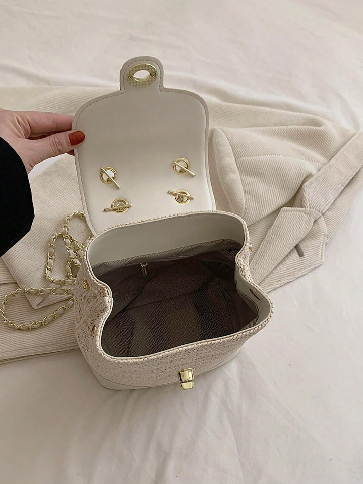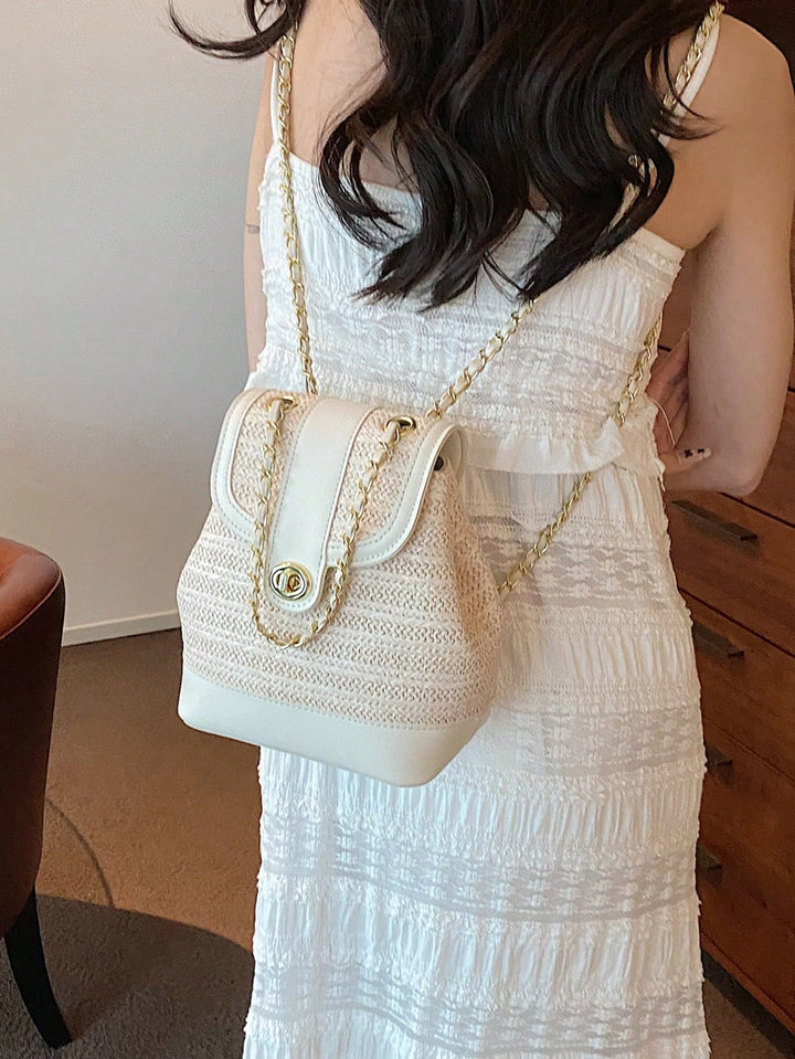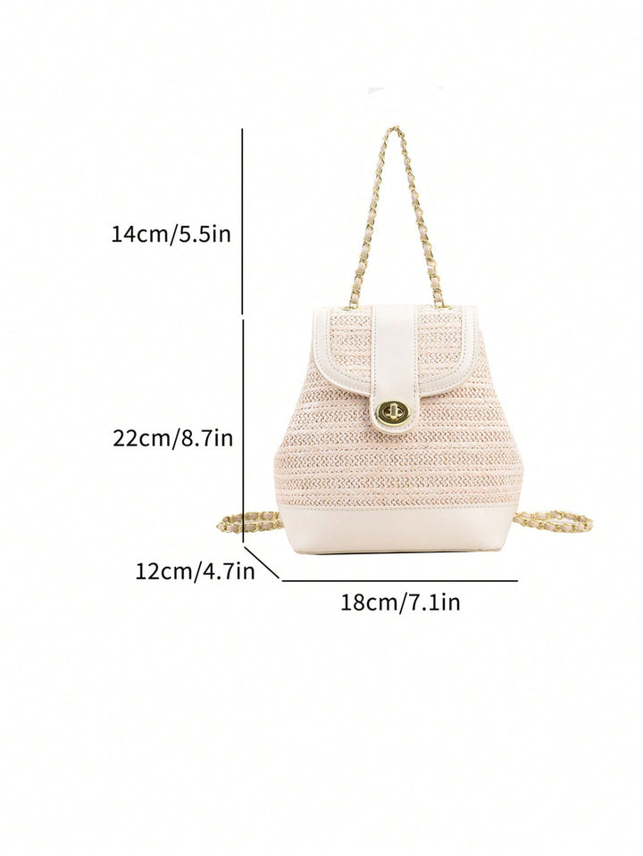 Shein - Women Pu Woven Backpack, Fashionable Detachable Lock Beach Bag