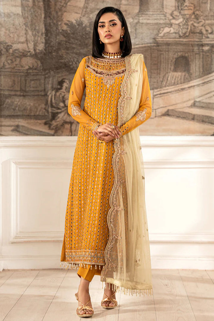 Zarif Unstitched 3 Piece Luxury Formal Edit Collection-ZFE-04-Eliza - Mustard